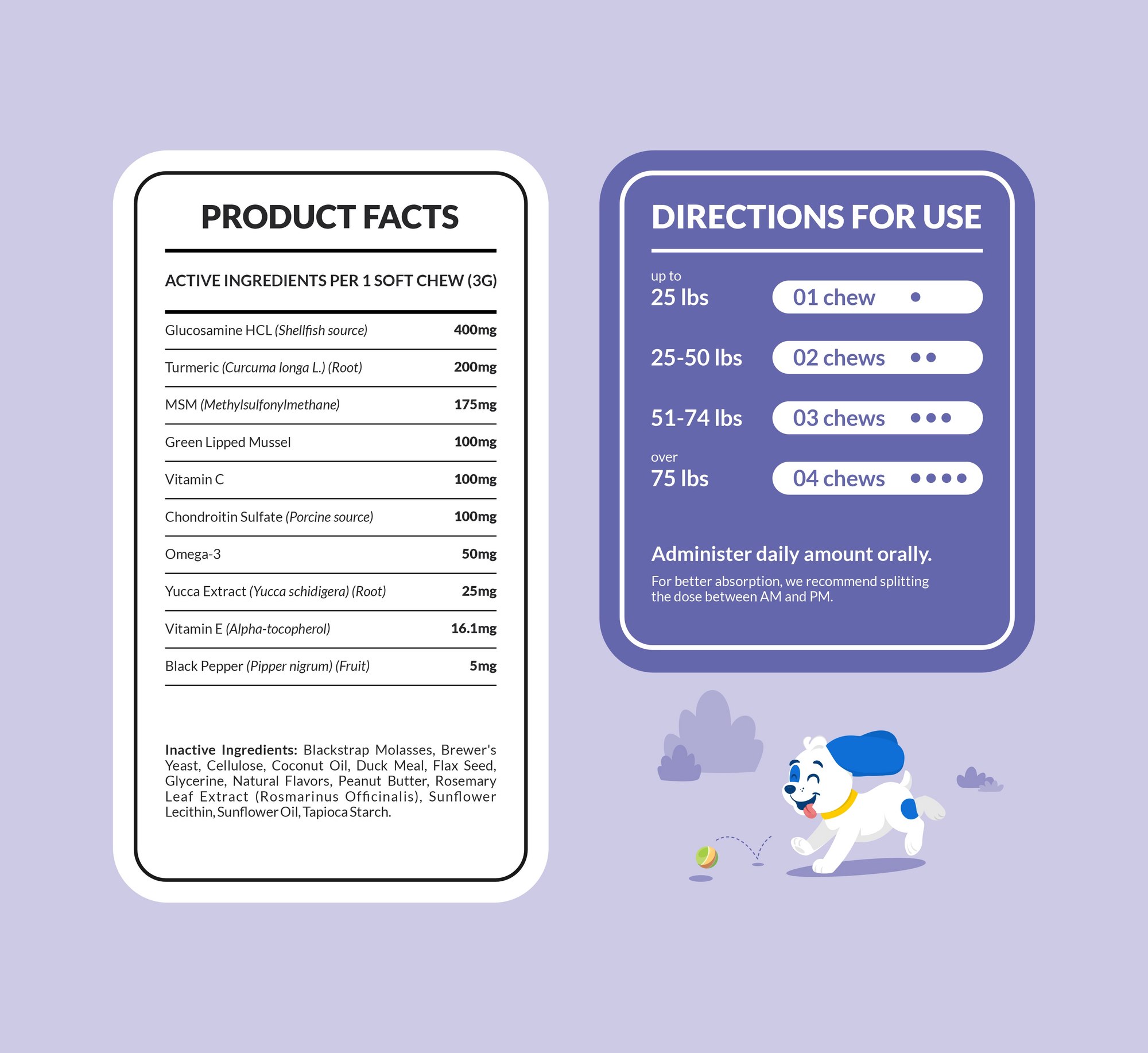 Hip and Joint Support for Dogs - Max Strength - 90 Soft Chews