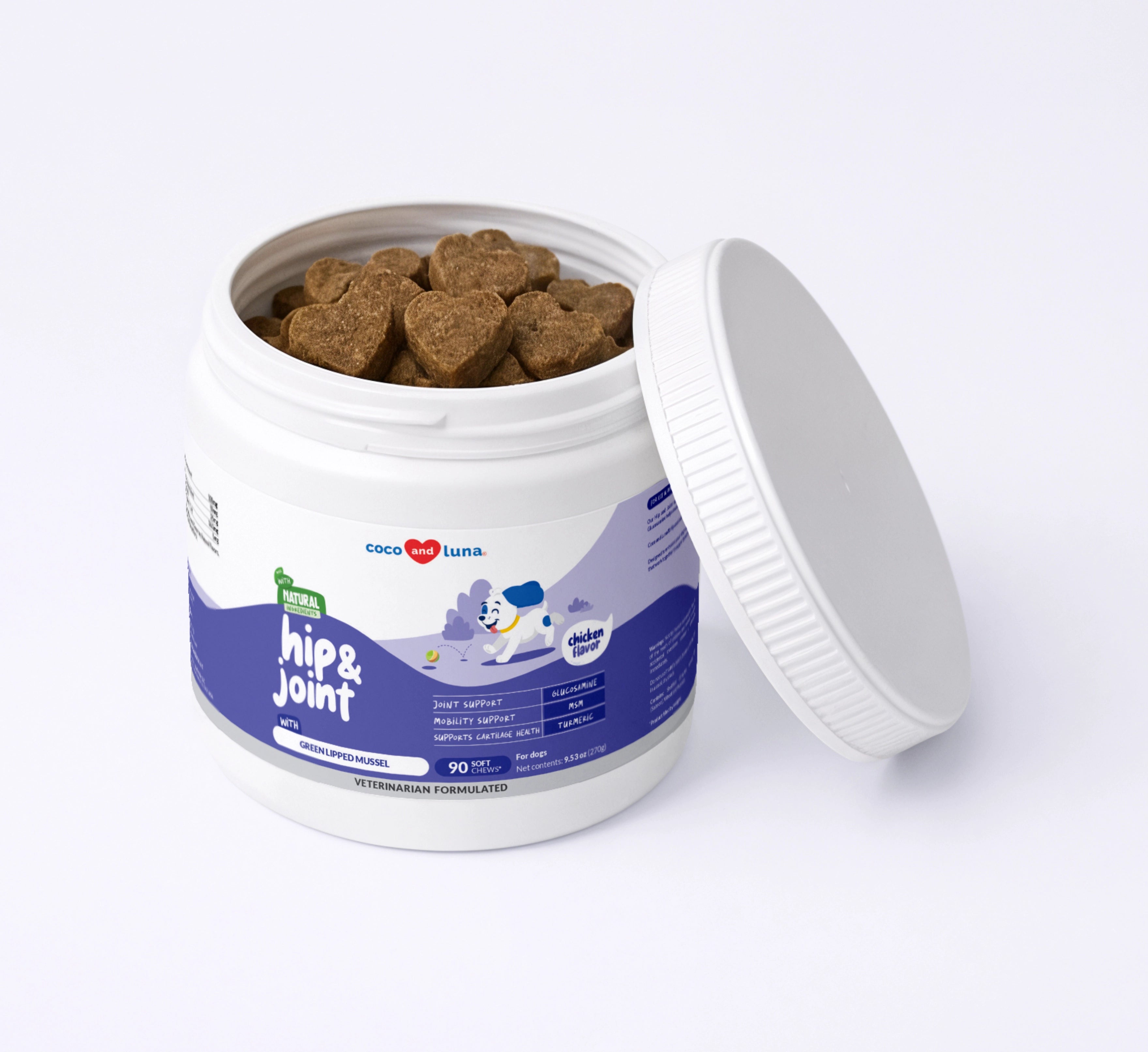 Elevate your dog's daily comfort and agility with our advanced Hip & Joint supplement.